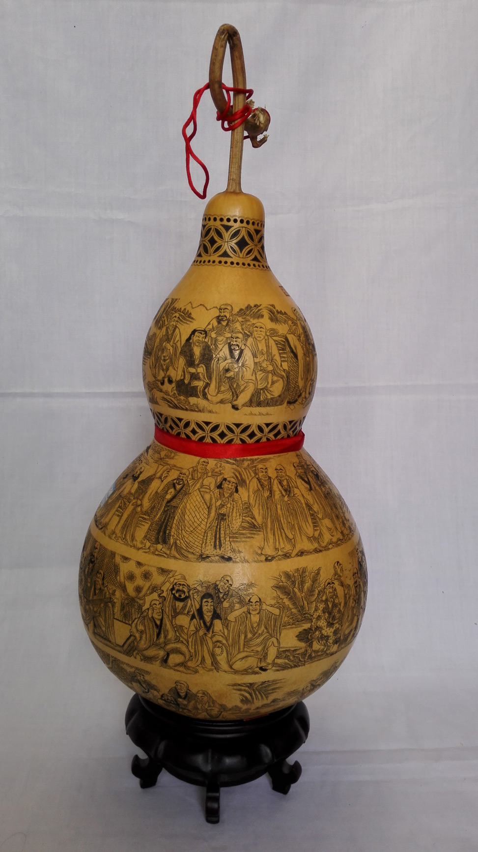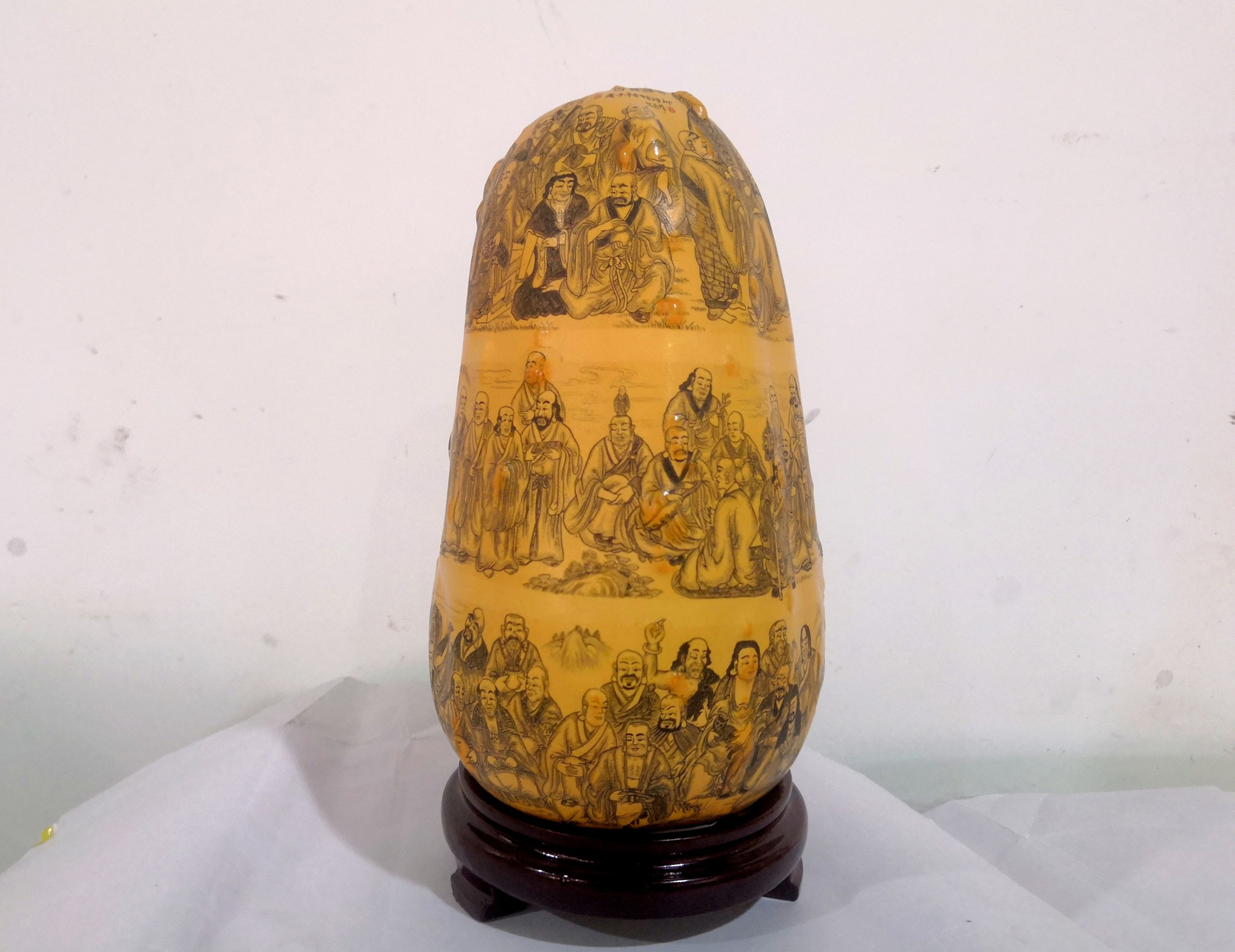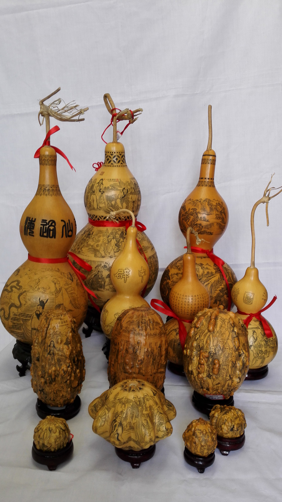 临夏的雕刻葫芦是省级非物质文化遗产之一,同时也是中国乃至世界上享誉盛名的民间技艺,主要是用针在葫芦表面进行线刻,来体现中国传统绘画山水、花鸟、人物和书法,然后涂上松墨,令其线条明晰。随着技艺高超的历代民间艺术家的不断发展创新,雕刻葫芦形成了自己独特的风格,成为欣赏收藏的艺术品。