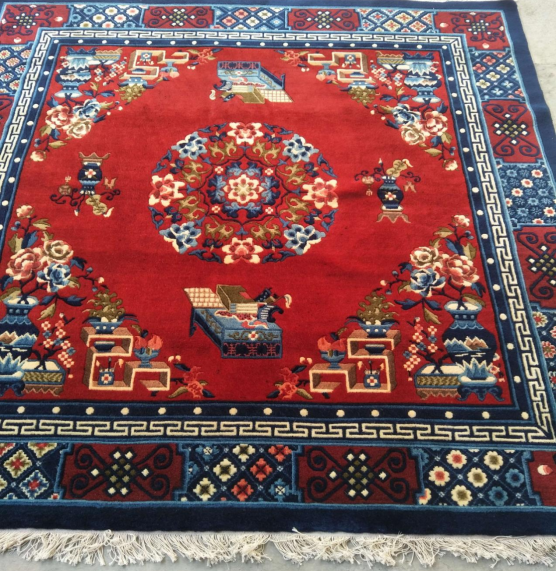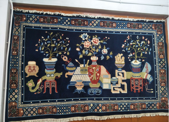手工地毯是临夏的特色产品,织造技艺历史悠久,地毯一般通过纺纱、染色、缠线、绘图、织毯、片剪、洗毯、平毯等十多道工序而制成,所生产的地毯、挂毯因原料纯正、工艺精良、质地柔韧、古朴典雅,而深受国内外客商的青睐。