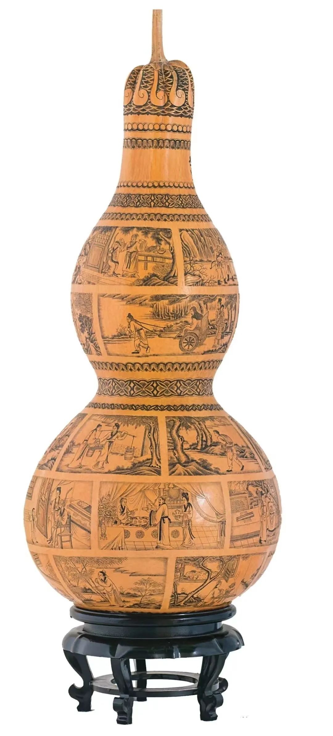 河州葫芦雕刻(富贵图) 高:39cm 宽:18cm