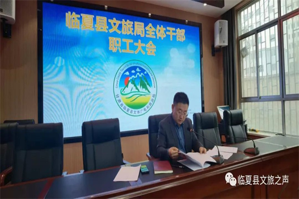 3月25日上午,临夏县文旅局召开干部职工会议,会议由文旅局负责人李华主持,各台、站、馆、股室以及文化志愿者100余人参加会议。
