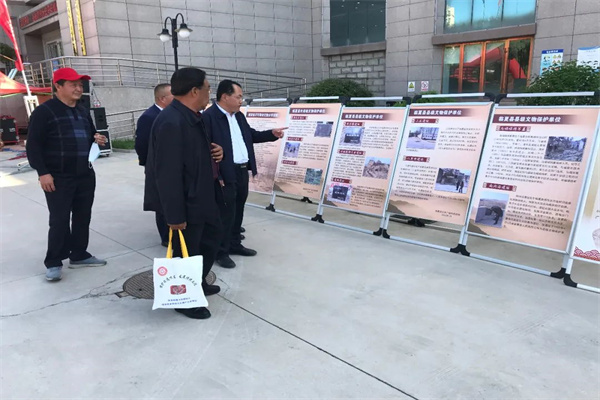 在现场摆放的流动文物展览牌前,临夏县博物馆摆放展板10块,发放《中华人民共和国文物保护法》《博物馆条例》、临夏县博物馆宣传彩页1000余份,讲解员为前来观看展览的观众们进行讲解,一起感受着博物馆所展现的文化精髓。