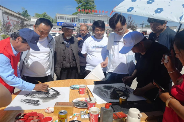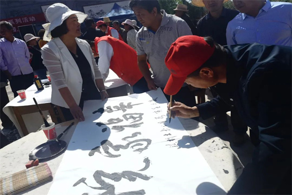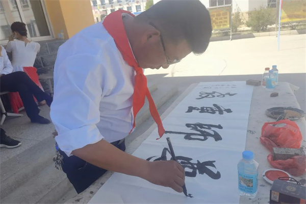 来自我县的书法家也为广大群众和师生讲解书画艺术,引得众多群众和师生亲身体验,书法家们挥毫泼墨,展示风采,现场气氛浓郁,墨香四溢。