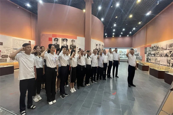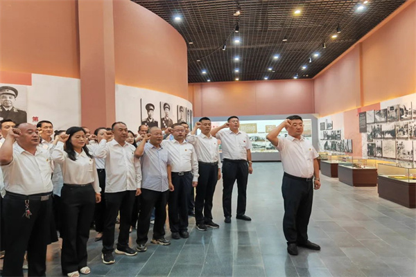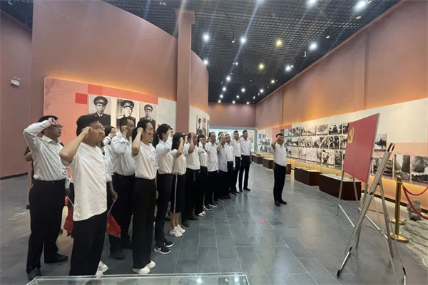 在纪念馆,李华同志带领全体党员面向鲜红的党旗,重温入党誓词,用铿锵的誓言表达了对党的无限忠诚,再次感受作为一名中国共产党员的荣耀和使命。