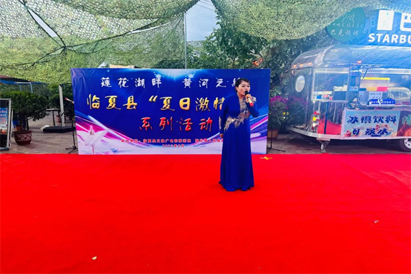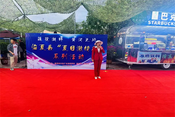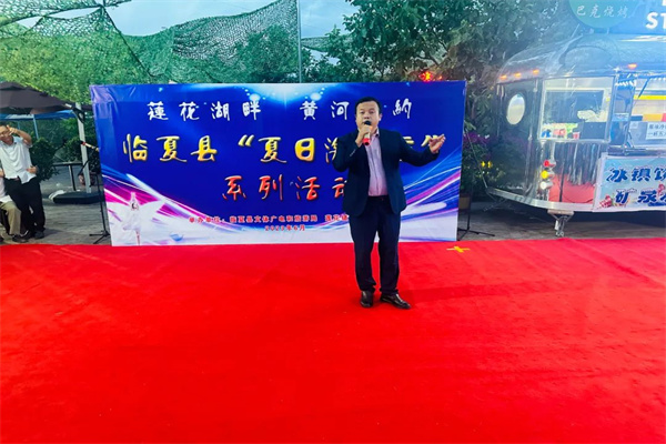 6月25日傍晚,莲花湖水涛拍岸,黄河右岸凉风习习。在环湖路莲花码头旁边,以“莲花湖畔 黄河之约”为主题的“临夏县夏日激情夜系列活动”如期举行。