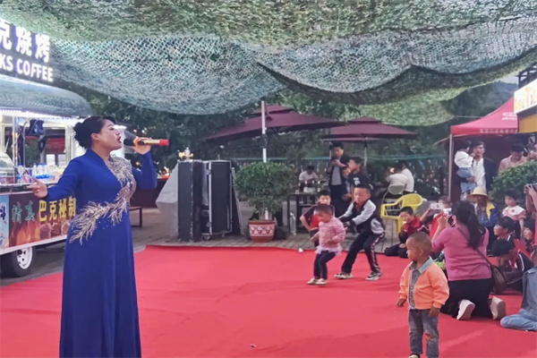 夜幕初降,音乐渐起,当地群众和游客围在舞台前面,或安坐品茗、或静享时光、或窃窃私语、或直播演出,一场专门为莲花湖打造的“草坪音乐节”就这样拉开了帷幕。州内知名乐队“撒尔塔乐团”和芦学霞、刘红、庞翠萍、王林云等花儿歌手齐聚莲花码头,共同唱响了莲花湖,演出赢得了观众的阵阵掌声。