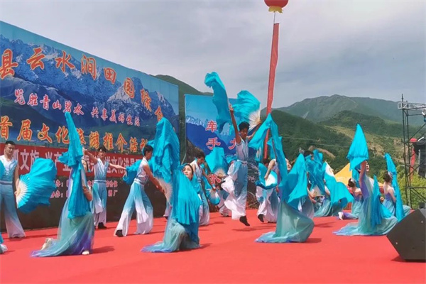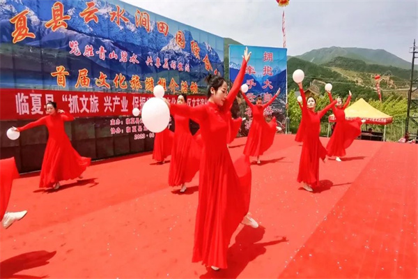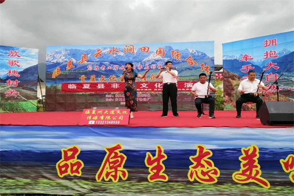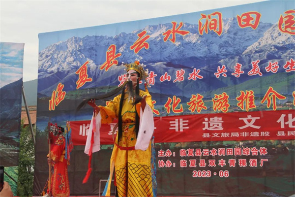 为打造具有我县特色的文化旅游景点,助推全县文旅产业高质量发展,依托临夏县独特的自然资源和人文生态优势,加快推进文化与其它产业的深度融合,宣传我县乡村特色文旅品牌,全面推进临夏县文旅产业提质增效,不断提升临夏县知名度和美誉度,助力乡村振兴,丰富群众的精神文化生活。2023年6月17日临夏县云水涧田园综合体首届“览胜青山碧水共享美好生活”文化旅游推介活动在我县尹集镇新发村云水涧田园综合体成功举办。当天上午由县文旅局组织宁河韵艺术团进行“抓文旅兴产业促振兴”送文化进景区主题文艺演出,下午由县文旅局非遗股和县民协组织了花儿、河州贤孝及眉户戏等非遗节目的展演。