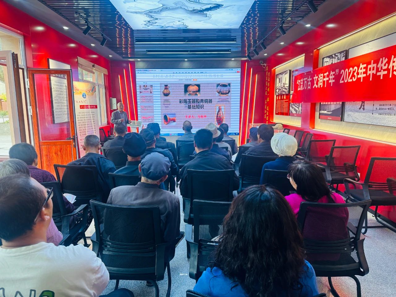 并邀请临夏县博物馆馆长马钰华为当地村民进行公益性讲座,讲座以临夏彩陶文化为主,生动的讲解了灿烂辉煌的马家窑文化马家窑类型、半山类型、马厂类型,齐家文化玉器,青铜器等。让群众了解灿烂的黄河流域史前文明,感受中华文明的源远流长,感受古人的智慧。
