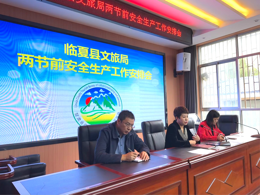 9月28日,临夏县文旅局召开“两节前安全生产工作安排”会议,县文体广电和旅游局党组书记、局长赵淑珍主持会议并就做好两节期间文旅领域安全生产和值班值守工作做了安排部署,会议还学习传达了“临夏县‘两节’安全防范暨2023年专项行动会议”主要精神,局属各事业单位、各股室共计75人参加了会议。