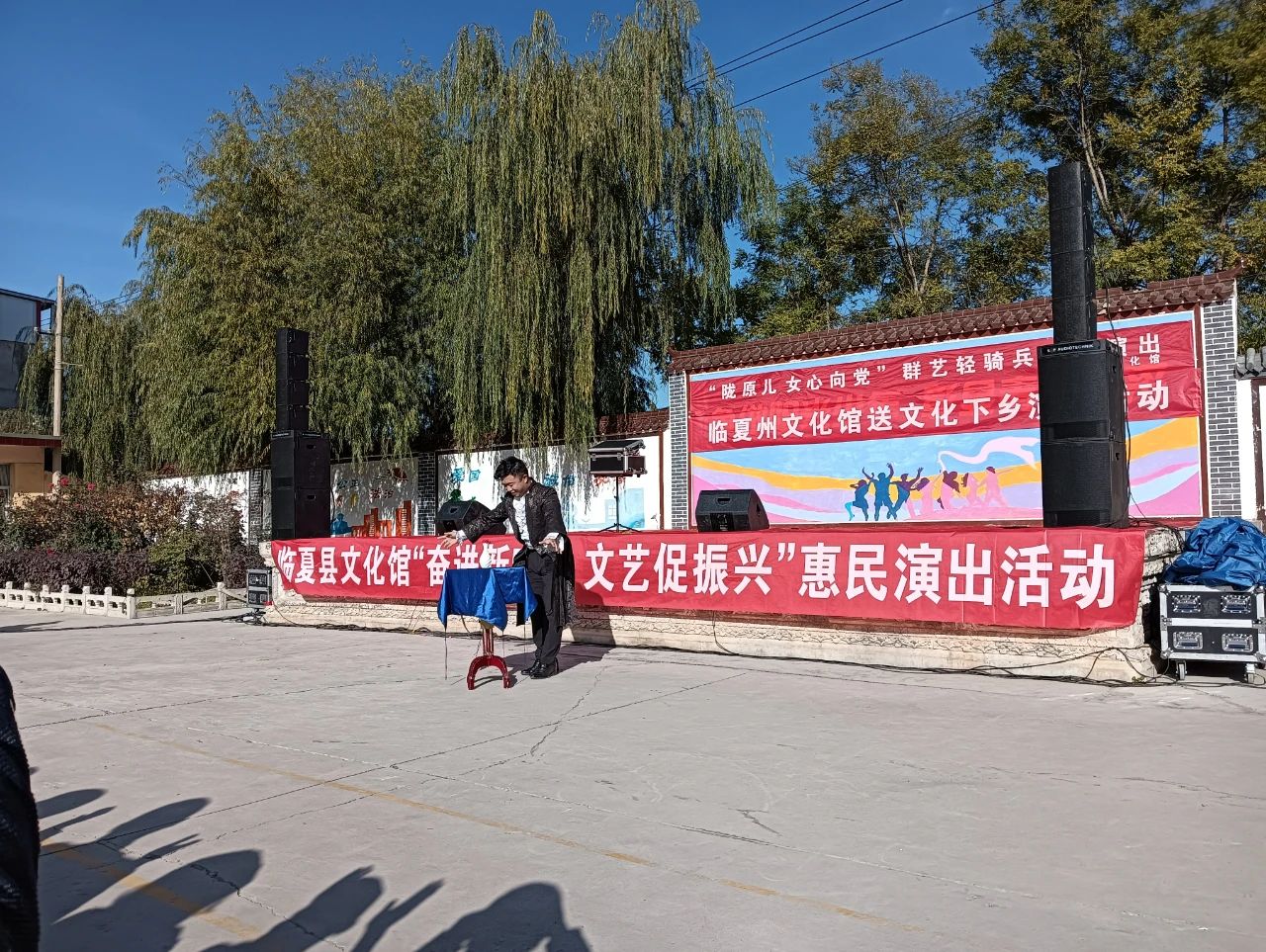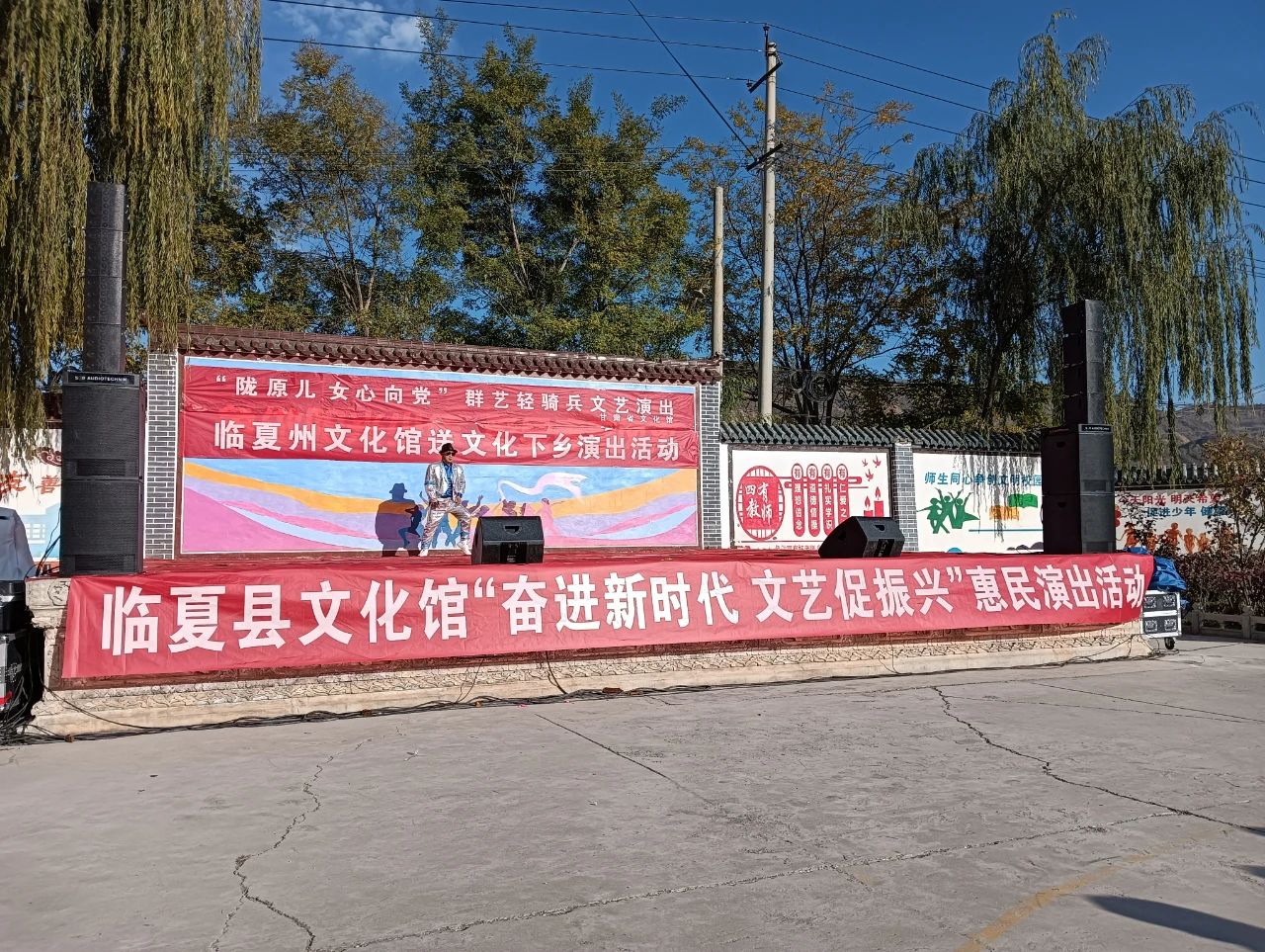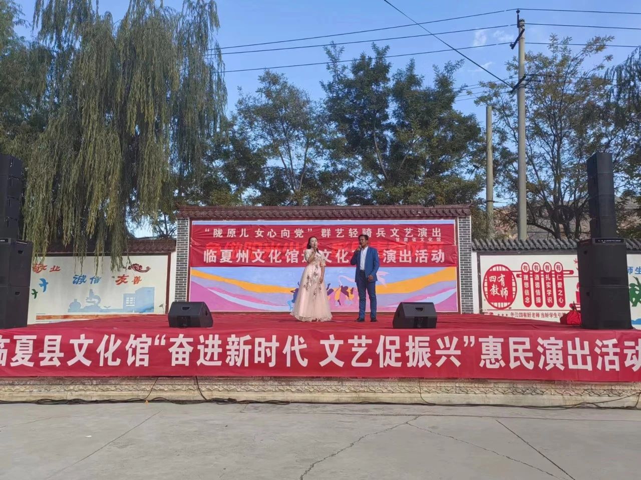 2023年10月30日下午,“陇原儿女心向党”甘肃省文化馆群艺轻骑兵下基层首场文艺演出走进临夏县振华中学,和临夏县文化馆的演职人员联合给老师和同学们送去了精彩的文艺演出。