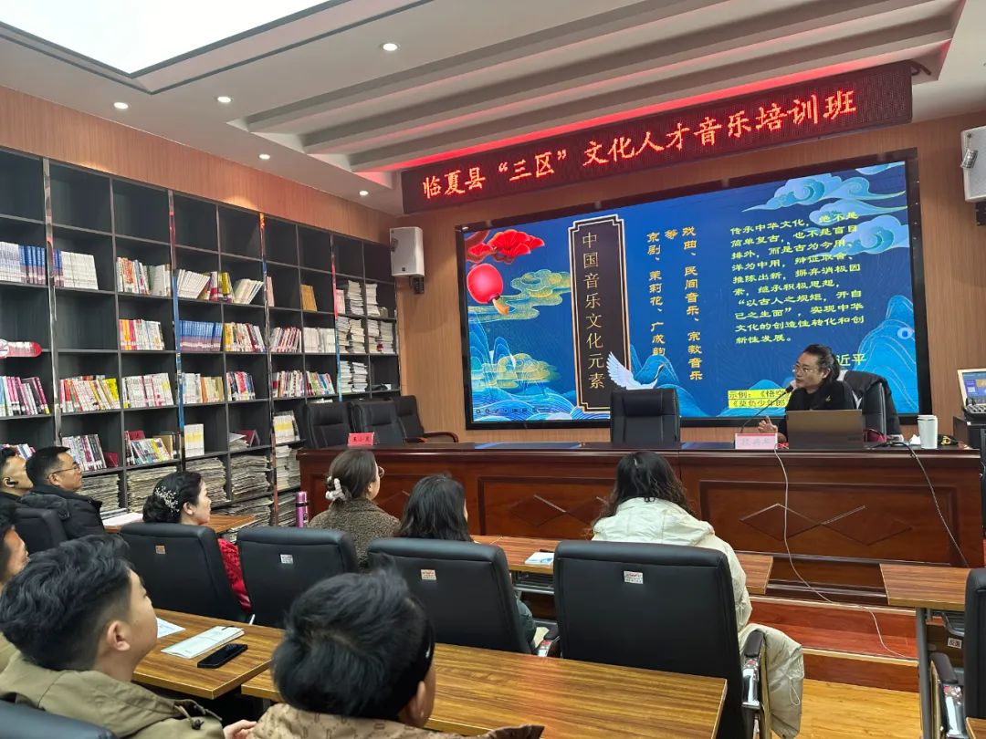 12月12日上午,由甘肃省文化馆、中共临夏县委宣传部主办,临夏县文体广电和旅游局、临夏县教育局、临夏县文学艺术界联合会、临夏县文化馆承办的2023年临夏县“三区”文化人才培训班在临夏县文化馆开班。