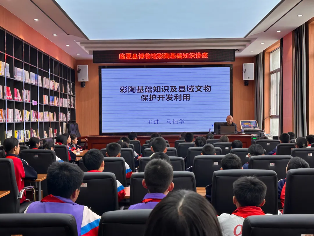 此次活动中,姚川小学五年级的学生们参观了三馆。参观结束后,在一楼多媒体室参加了县博物馆马钰华馆长主讲的《彩陶玉器和青铜器文化基础知识》的专题讲座。马馆长的讲座结合PPT课件,以图文并茂的形式主要介绍彩陶的产生、断代,纹饰、文化内涵及制作技艺,内容从旧石器时代到大地湾文化、仰韶文化、马家窑文化、齐家文化、辛店文化、寺洼文化等彩陶、玉器、青铜器的基础知识。