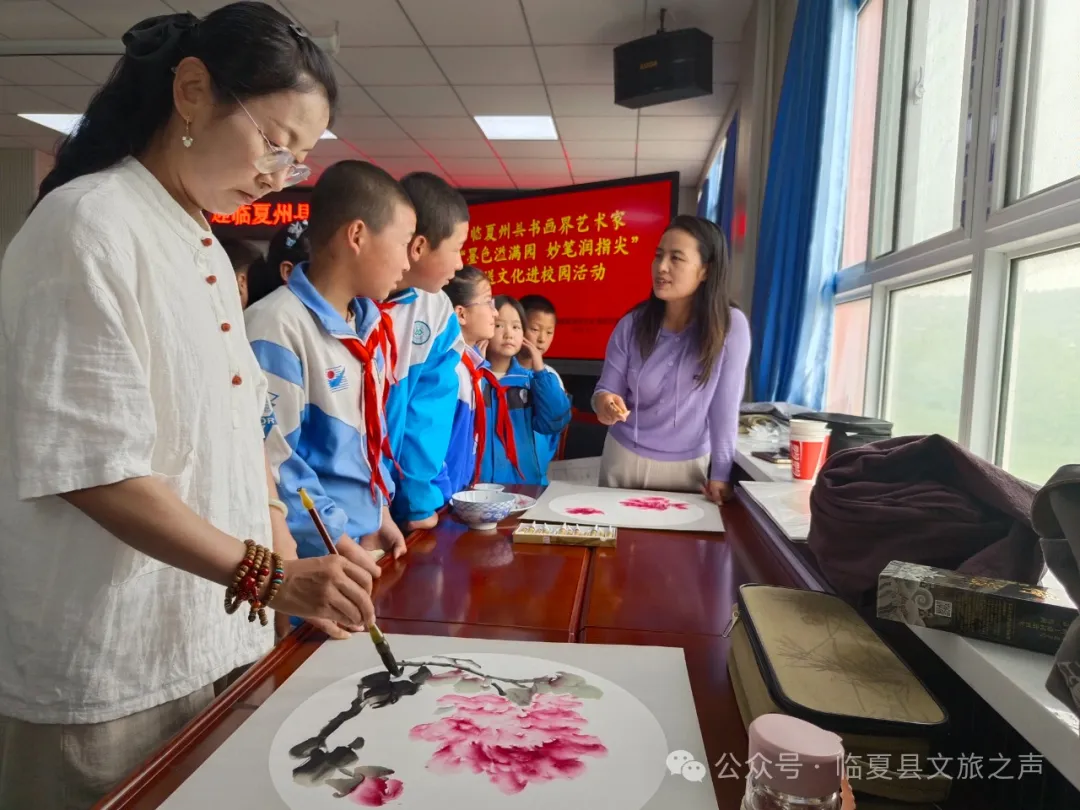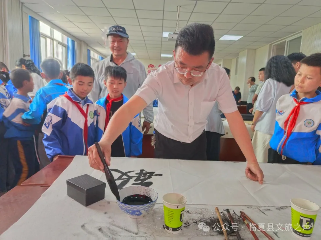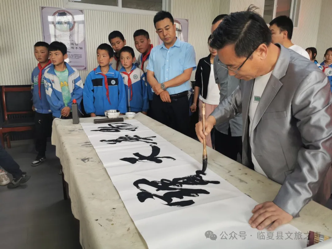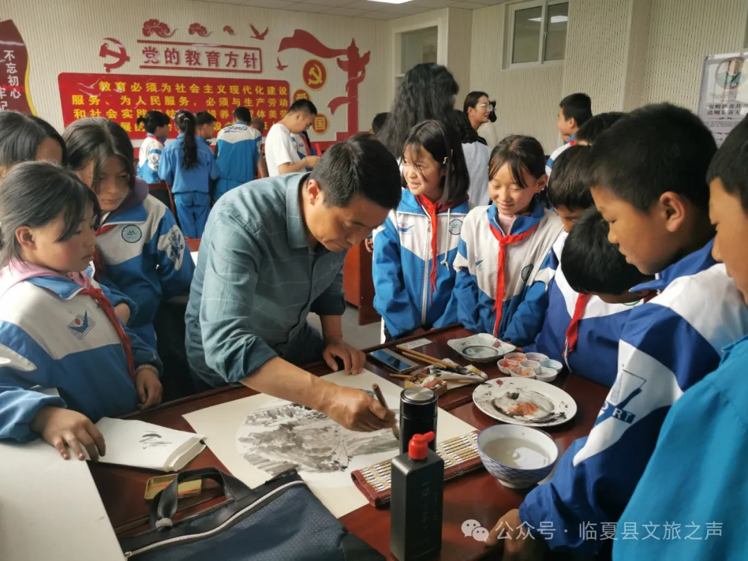 2024年5月17日,州美术馆和县文化馆组织书画工作者走进漠泥沟中心小学,开展了“墨色溢满园 妙笔润指尖”送文化进校园活动。