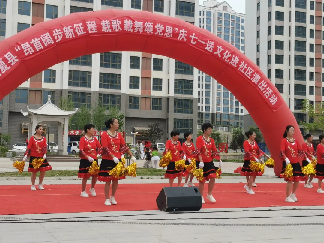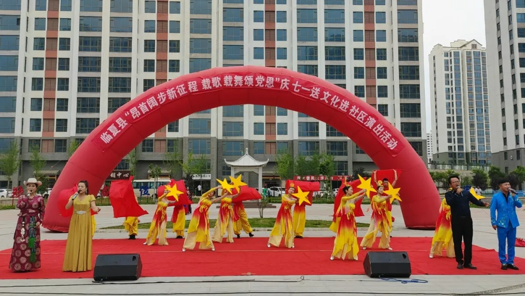 六月下旬,绿树成荫,繁花似锦,在七一建党节来临之际,6月27日上午县文旅局组织演出团队在大夏河畔漓水名都小区举办临夏县“昂首阔步新征程 载歌载舞颂党恩”庆七一送文化进社区文艺演出活动。