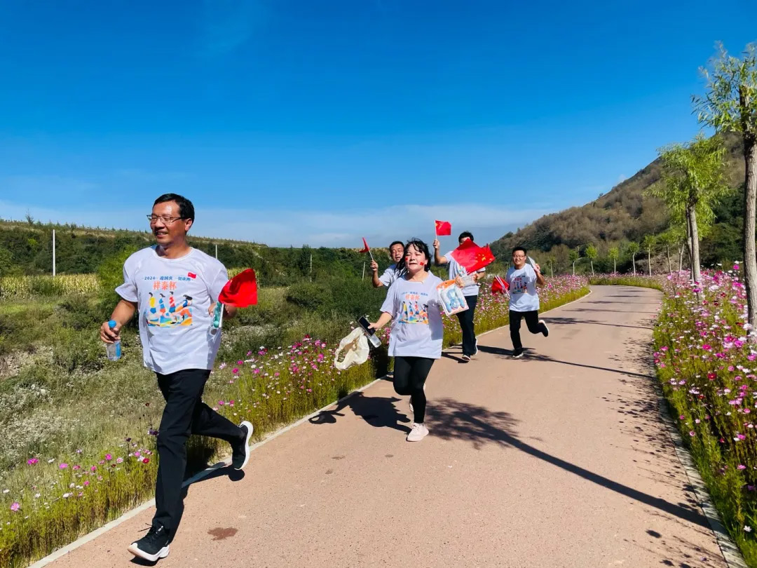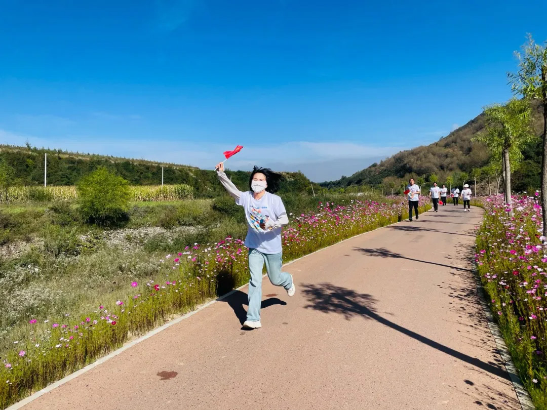 上午9时,在临夏县尹集镇槐树关东路起跑点,彩旗迎风招展,人头攒动,热闹异常,整装待发的跑友们正做着起跑前的热身准备,大家挥舞着手中的五星红旗,以昂扬向上的精神状态迎接健康跑。随着一声号令,健康跑正式开跑。