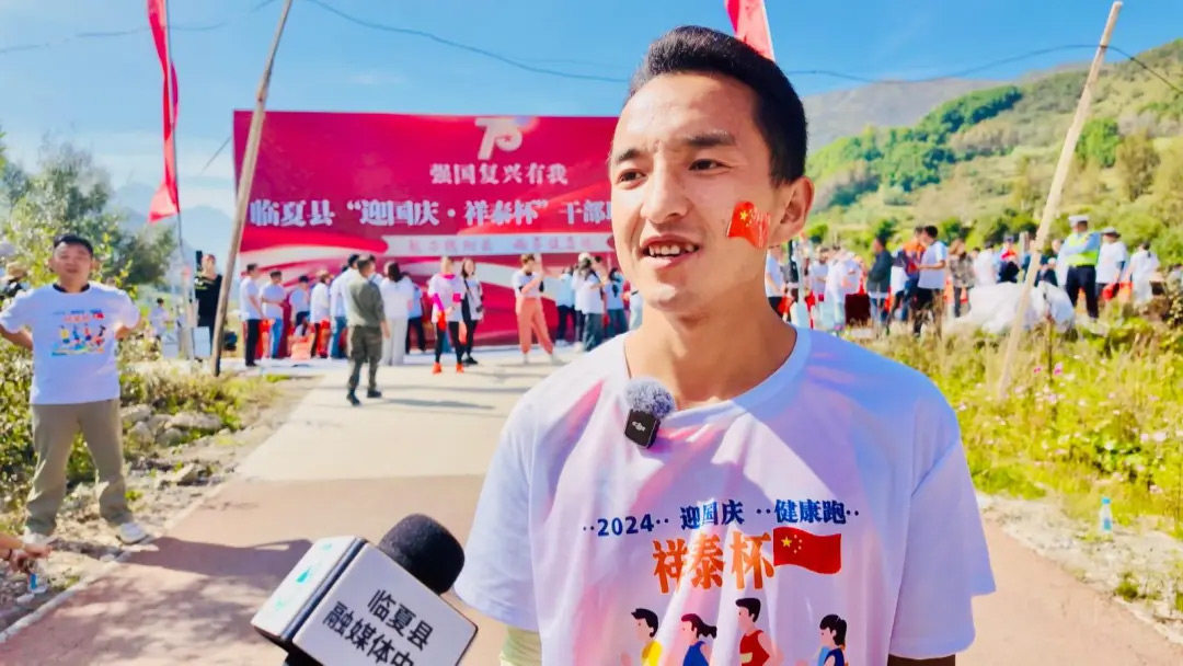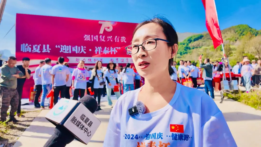 临夏县全民健身中心副主任 赵花姐:“在庆祝中华人民共和国成立75周年之际,举办了这场充满活力与激情的祥泰杯干部职工健康跑活动。此次活动全程10公里,吸引了近1300多名干部职工踊跃参与。这次活动的成功举办进一步丰富了干部职工的文化生活,更是对全民健身理念的积极践行。”