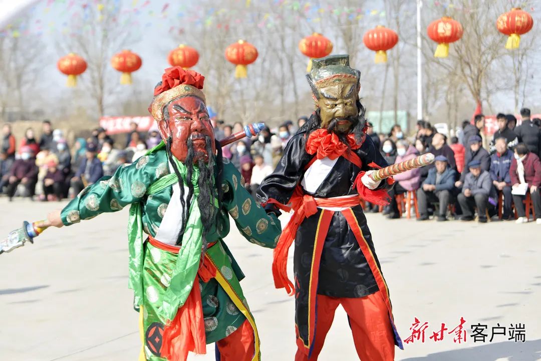 2月4日,临夏县先锋乡鳌头村村民跳起省级非遗项目——“鳌头傩戏”,展现出当地傩文化艺术的独特魅力。临夏县先锋乡鳌头村傩戏集舞蹈、乐器于一身,展现出当地傩文化艺术的独特魅力。2017年,临夏县先锋乡“鳌头傩戏”被列入第四批甘肃省非物质文化遗产代表性项目名录。