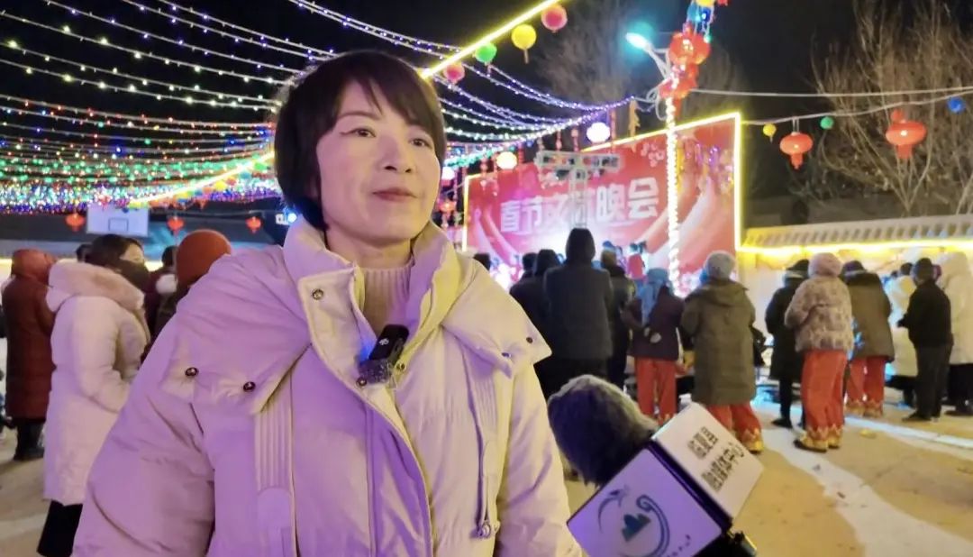 河西乡常家村村民 祁文红:“我们常家村村民自发组织这场‘村晚’,给群众带来了欢乐,增添了年味。我表演的是打太平鼓,平时就在村文化广场练习,既锻炼了身体,也丰富了生活,我感到特别开心。”