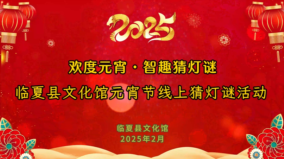 为进一步弘扬中华优秀传统文化,活跃新春佳节的文化氛围,2025年2月12日至2月14日,临夏县文化馆组织开展“元宵节线上猜灯谜活动”,奖品丰厚,快来挑战吧!