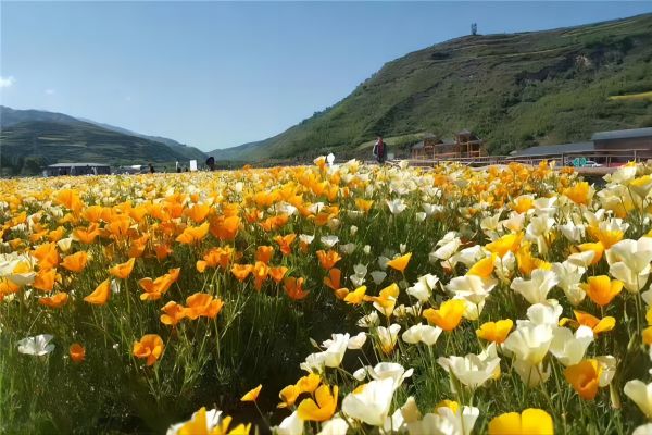 6月24日,临夏县麻尼寺沟乡韩门村七彩花海正式开业。花海内,一眼望去,五颜六色的鲁冰花像个战士一样站立成松;花菱草,黄色的花瓣搭配金色的花蕊,在青山绿水、蓝天白云的映衬下,格外清新秀丽。七彩花海内主要种植有鲁冰花、花菱草、金鱼草、马鞭草、薰衣草等花卉。