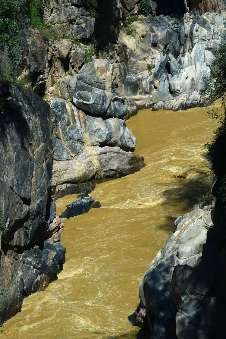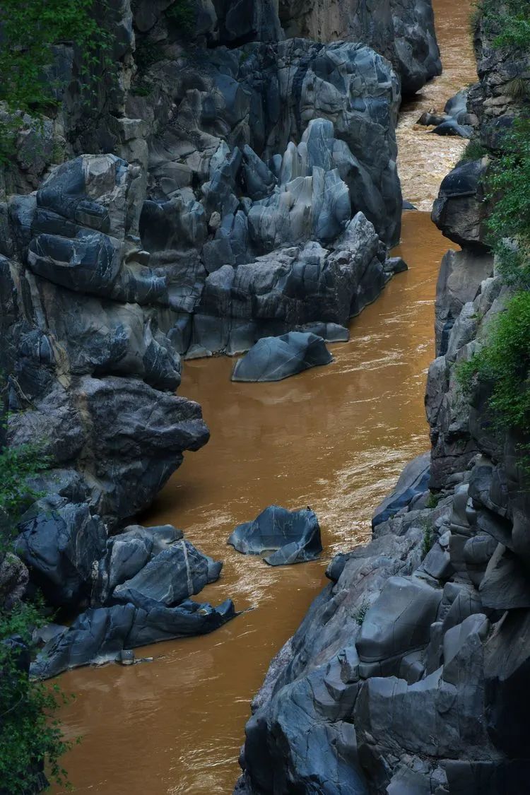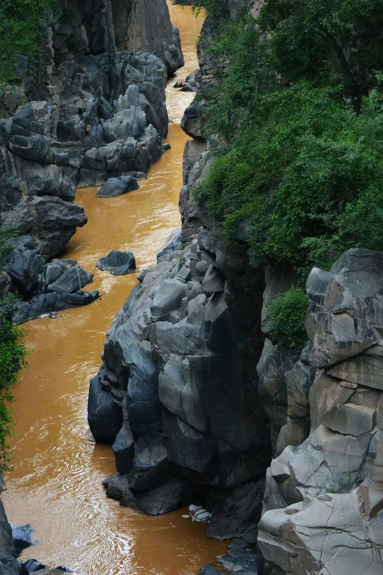 “洩湖峡”系狭缝型峡谷,两壁为青石崖,十分精致,石质坚硬,色泽丰富,具有良好的观赏性。据说这也因大禹凿岩而起,大禹凿岩时,由于岩石坚硬,根本无法开凿,于是就用火烧,随后再用水浇,使之快速冷却而崩裂。所以就留下这种五颜六色且奇形怪状的岩石。其色泽主要呈深蓝,其间夹杂有纯黑的夹层,铁青、奶白、浅黄色的石块也间有出现。每天中午前后,阳光倾泻在岩石上,五颜六色,熠熠生辉,极其亮丽。在峡谷的底部分布着大小不同,形态各异的壶穴、石臼、流槽,其形态各异,变幻无穷,怪石岿然,窍穴逶邃。有些奇特的巨石,横梗在湍流之中,或隐或现,灵动无限。其间的水流如脱缰的野马,跳珠溅玉,浆琼飞迸,呼啸而去。在这里很多石头都有专用名称,且都与大禹有关,有“大禹脚印石”、“大禹支锅台”、“大禹坐卧石”、“大禹跳崖印”等等。明代嘉靖时,山东举人临洮府通判刘承学的《洩湖雷鸣》写的就是这里的景象,诗云:“两山开处洩湖桥,大禹神功迹尚昭。二水会同直北注,一湖容纳转东潮。山当峡处流如箭,水遇石时响似妖。不但声闻夷虏恐,还分余派润枯焦。”清·河州进士涿州知州张和的“洩湖春涨”写的也是这里的情景,诗中写到:“石峡巉巉白昼昏,洩湖东去凿云根。春雷奋地千山响,骇浪掀天万马奔。岸架危桥虹跨影,崖镌古篆鸟留痕。神工应是巨灵擘,耳底汹汹欲荡魂。”