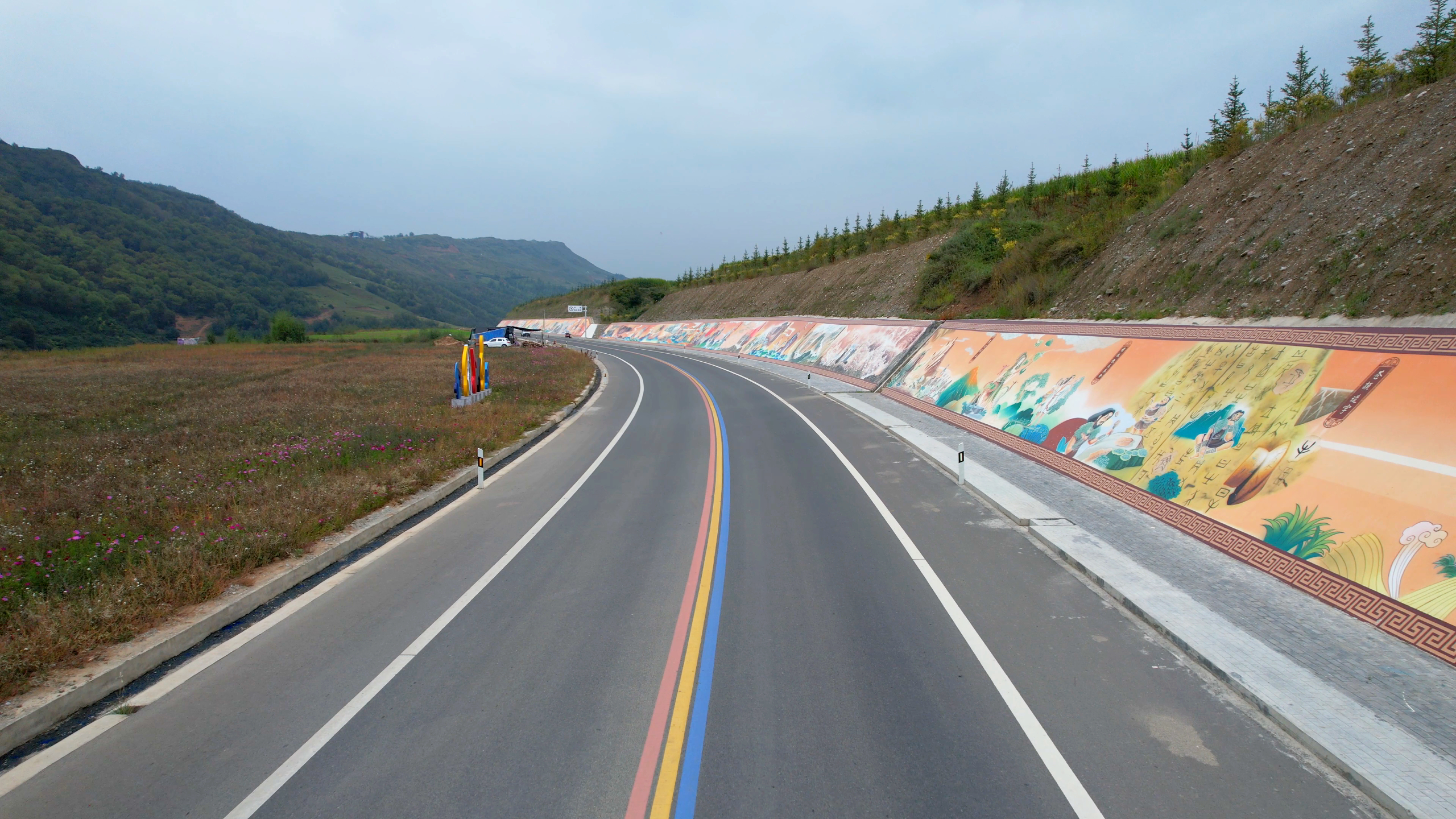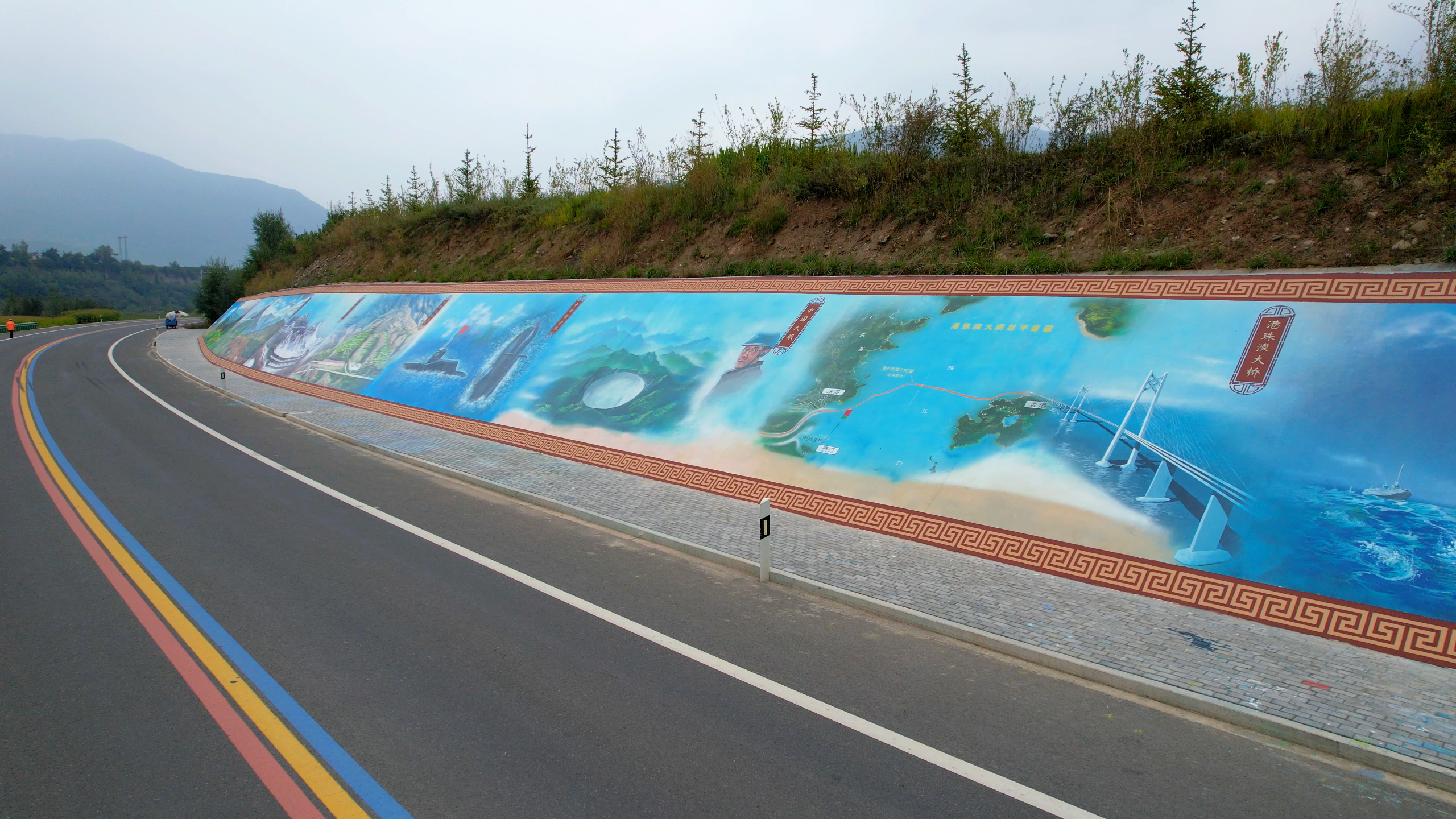 近日,在太子山旅游风情大通道临夏县段,一大片墙绘格外引人注目,画面栩栩如生,妙趣盎然。
